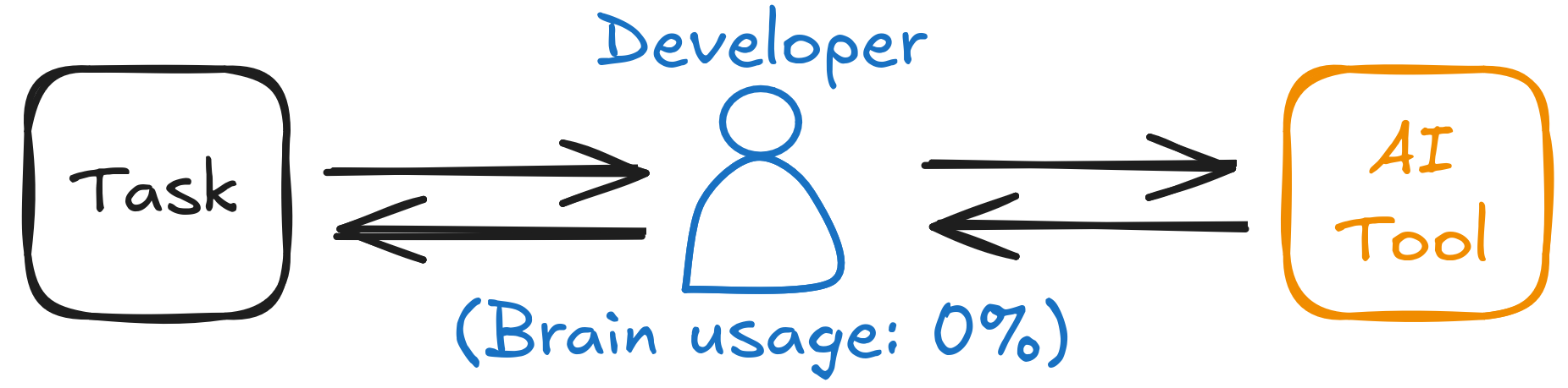 The things I wrote will not resonate with everyone of you. A lot of people donât like their job or simply donât care about it. If thinking time can be avoided - therefore using less energy - why not? Why feel guilty about it? If this is your opinion, I cannot do anything to change that. I am simply trying to provide my perspective, and I can only hope that the bleak future I am writing about, where people are unable to do things autonomously and they use their time to write prompts for AI agents and tools, is really really far away.